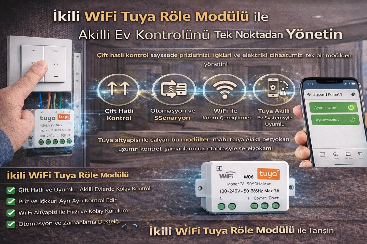 22 Ara Tuya Akıllı Röle Modülleri İkili WiFi Tuya Röle Modülü ile Akıllı Ev Kontrolünü Tek Noktadan Yönetin Yayınlayan: cerkezogluibrahim 22 Aralık 2025 0 İkili WiFi Tuya Röle Modülü ile Akıllı Ev Kontrolünü Tek Noktadan Yönetin Akıllı ev sistemlerinde aydınlatma, priz ve elektrikli cih... Devamını oku