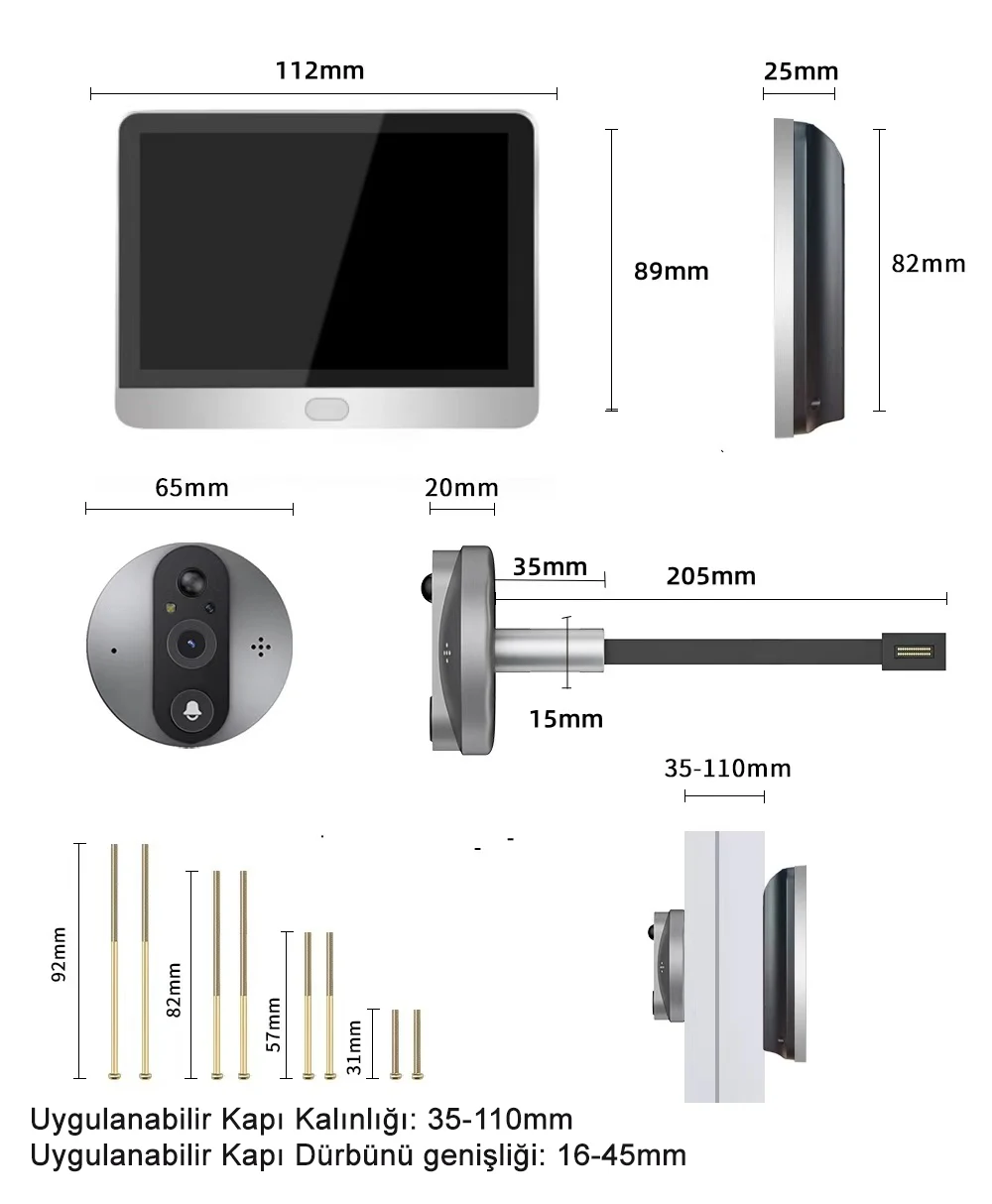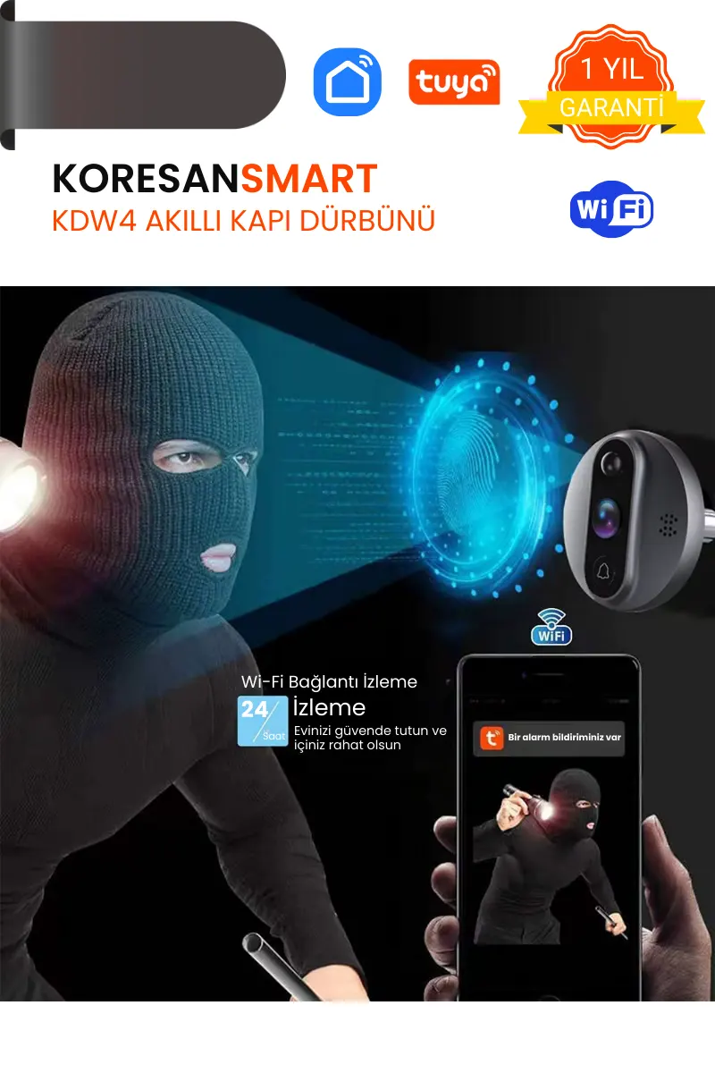 KDW4 Tuya Wifi Akıllı Kapı Dürbünü, düşük güç tüketimi, HD 3MP görüntü, gece görüşü, hareket algılama, otomatik uyanma ve çift yönlü ses desteği ile ev güvenliğinizi bir üst seviyeye taşır. Video kayıt özelliği sayesinde anı kaçırmaz, mobil uygulama üzerinden canlı erişim imkânı sunar.
