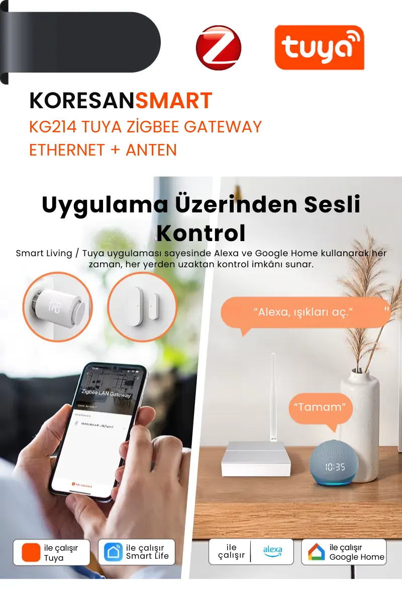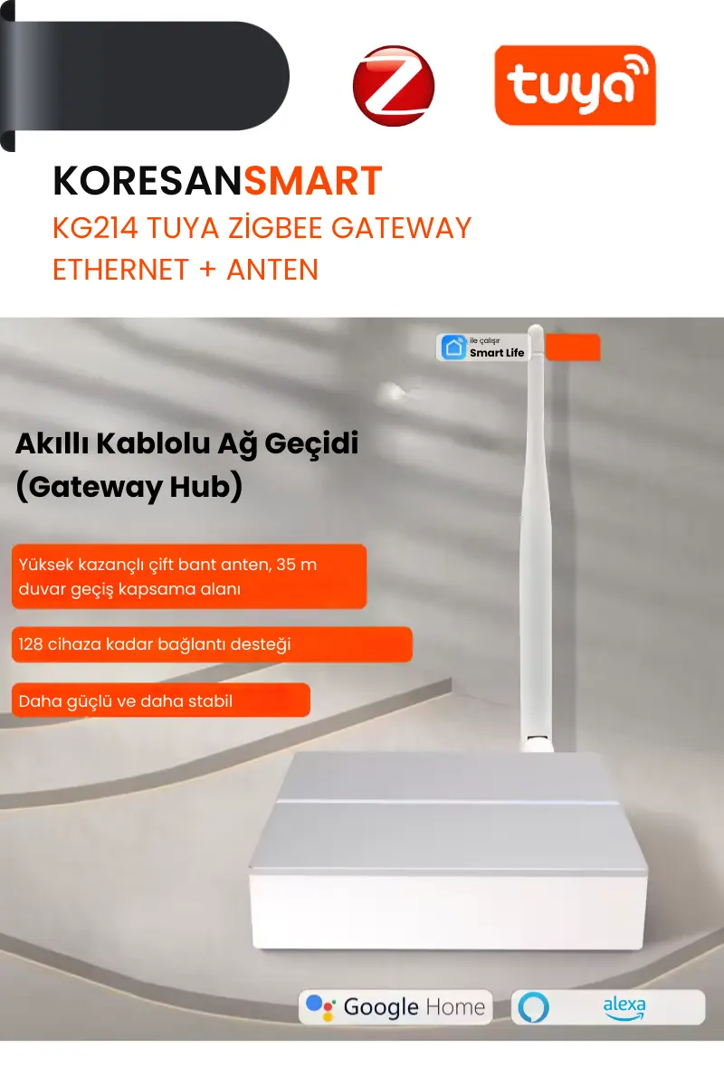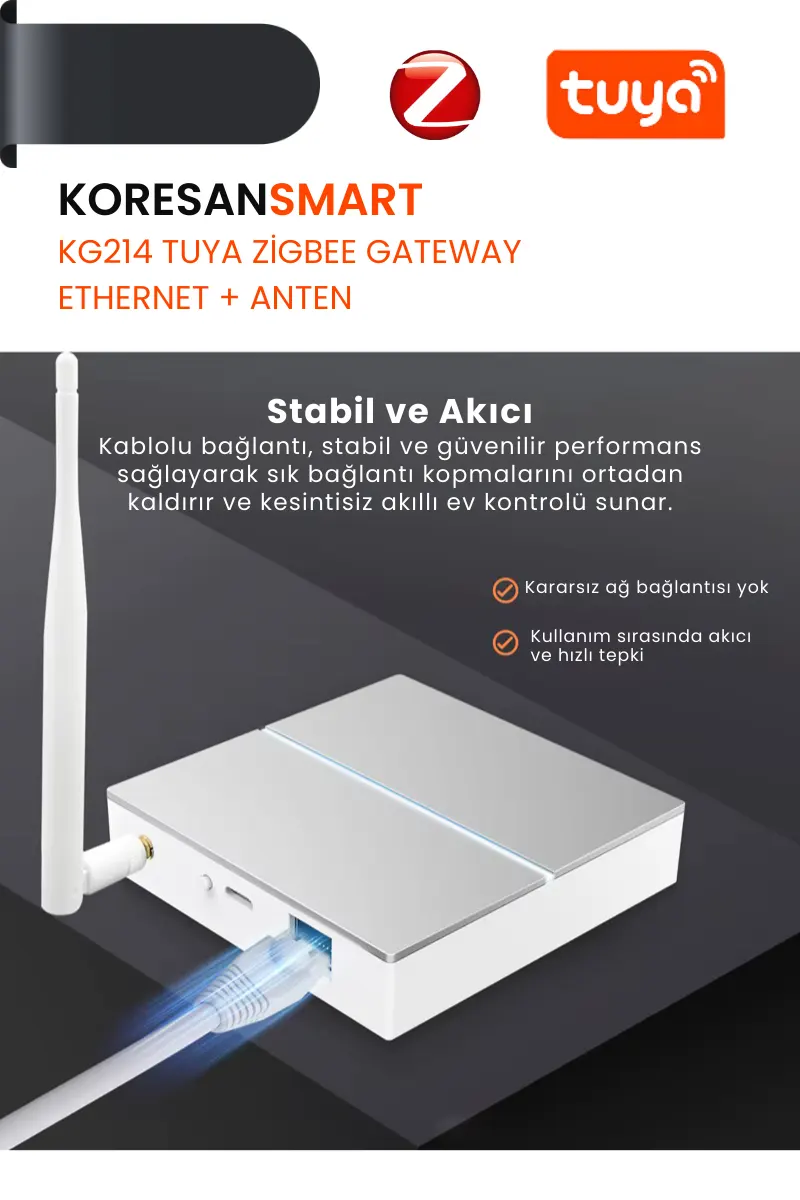 KG214 Tuya Zigbee Gateway Ethernet + Anten – Kablolu RJ45 Stabil Bağlantı