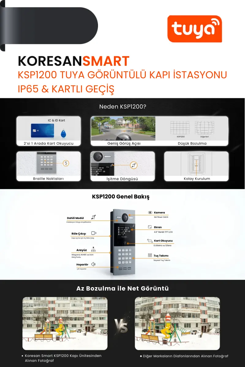 KSP1200 Tuya Görüntülü Kapı İstasyonu – IP65 & Kartlı Geçiş