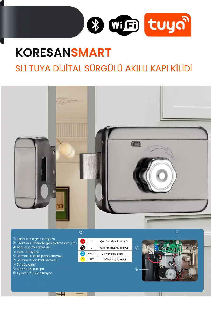 SL1 Tuya Dijital Sürgülü Akıllı Kapı Kilidi