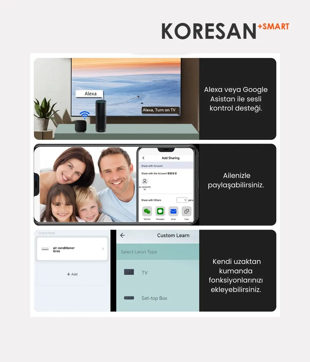 Kompakt boyutlu bu cihaz, sıcaklık ve nemi anlık olarak ölçerek mobil uygulamaya iletir. IR uzaktan kumanda özelliğiyle klima ve diğer cihazları da kontrol etmenizi sağlar.