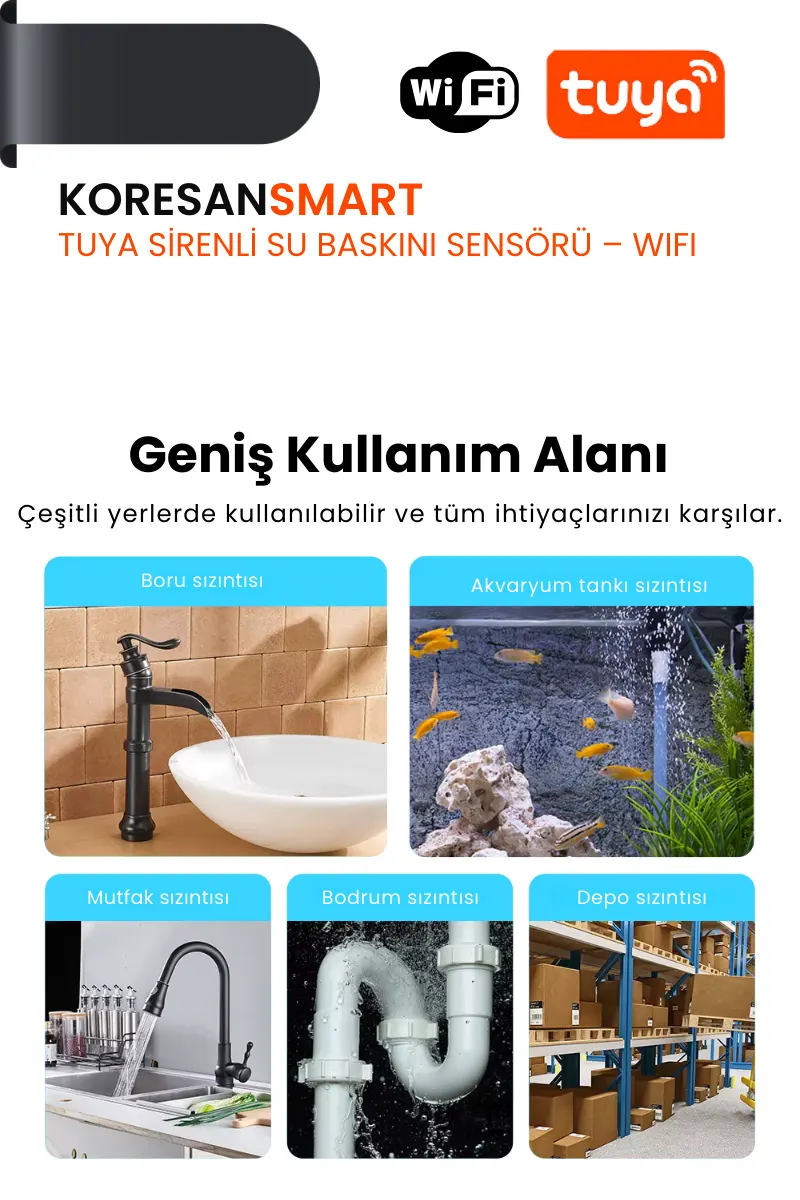Tuya Sirenli Su Baskını Sensörü – WiFi, evinizde veya iş yerinizde oluşabilecek