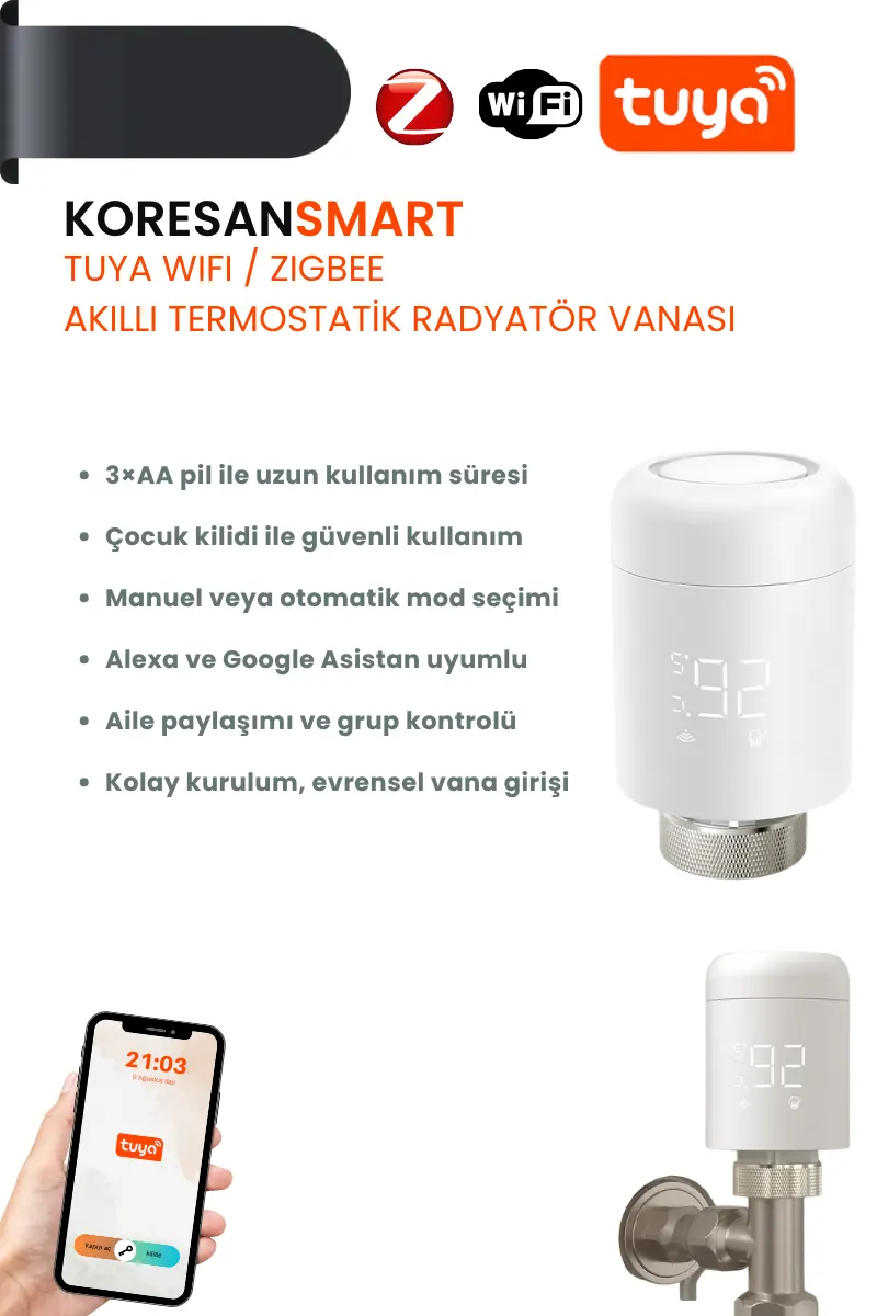 • 🔥 Tuya WiFi / Zigbee Akıllı Termostatik Radyatör Vanası ile evinizin sıcaklığını akıllı şekilde kontrol edin.