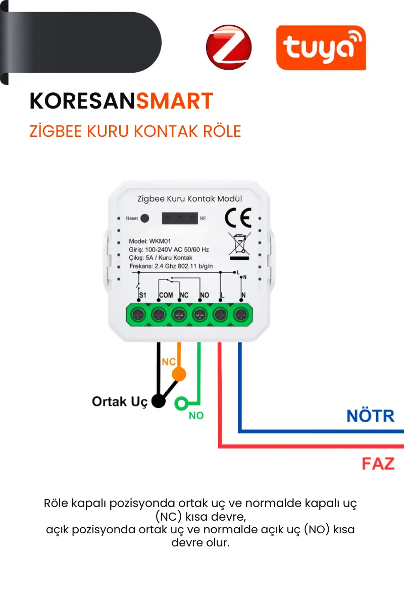 Zigbee Kuru Kontak Röle oto kapat ve harici anahtar destekli akıllı röle modülü